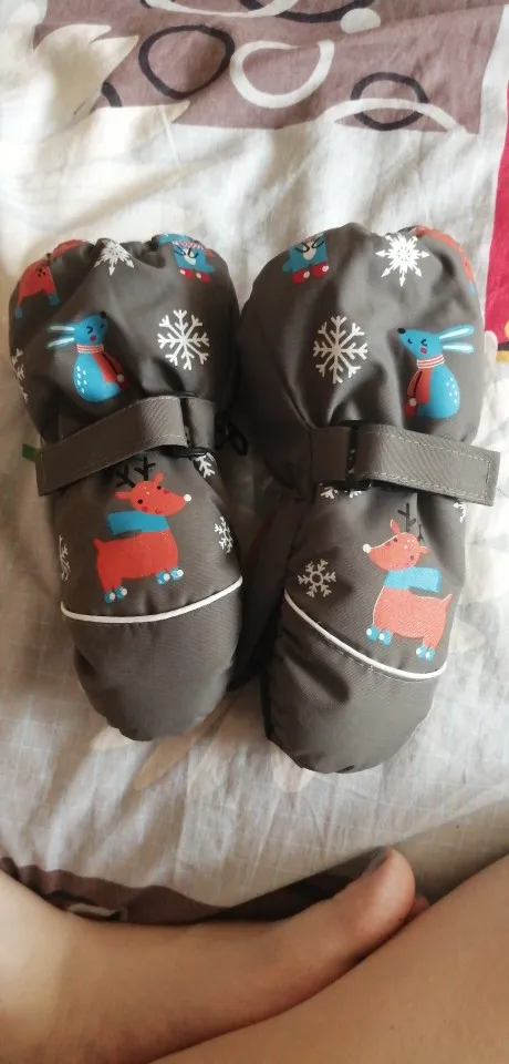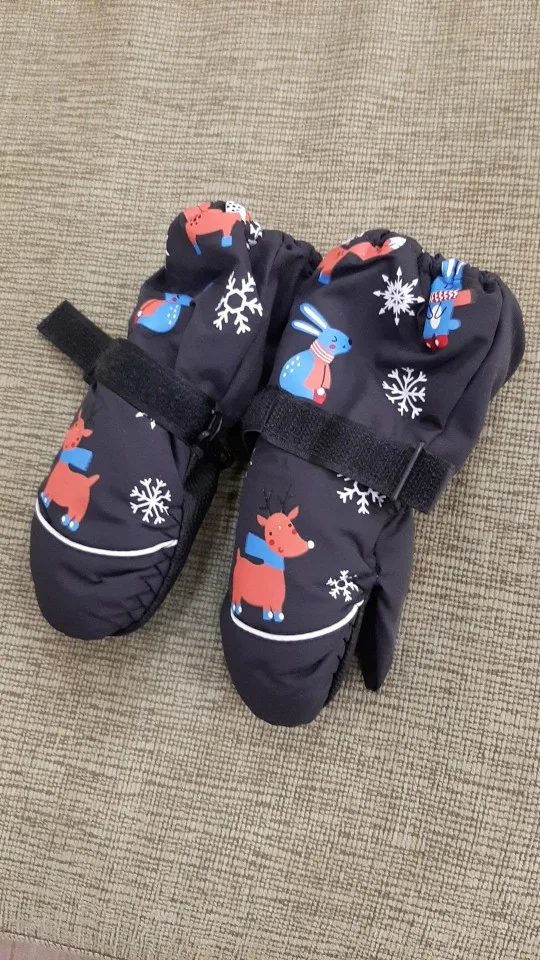 Зимние Детские ветрозащитные водонепроницаемые Нескользящие варежки с длинным рукавом Детские утепленные лыжные перчатки с принтом мультяшного оленя кролика