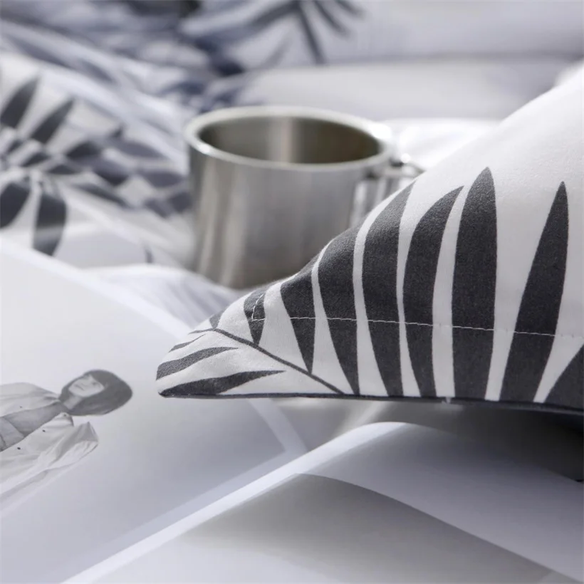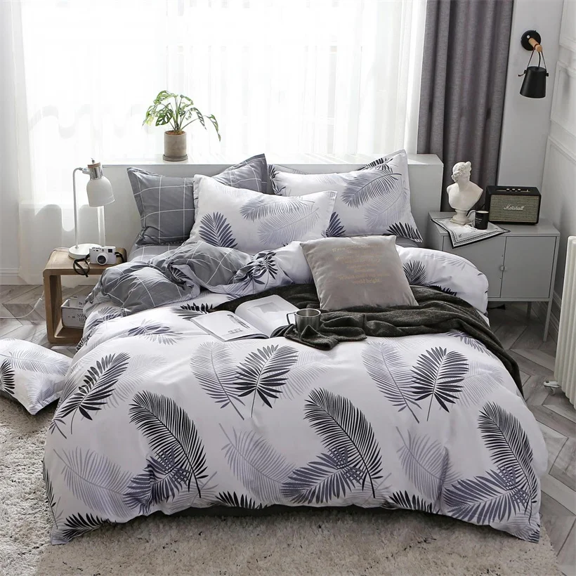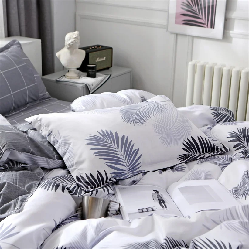 Комплект постельного белья с белыми листьями, наволочка, пододеяльник, простыня, стеганое одеяло в скандинавском стиле