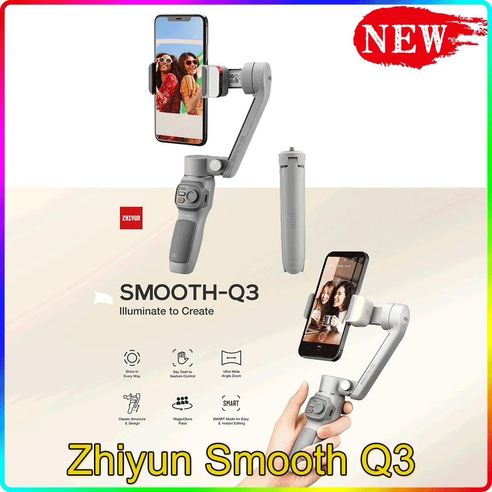 Стабилизатор ZHIYUN SMOOTH Q3 для смартфонов, 3-осевой Гибкий ручной стабилизатор с подсветкой для iPhone, Xiaomi, Samsung