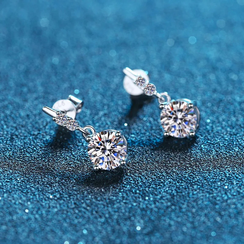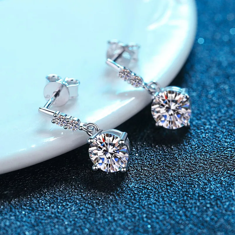 Серьги-подвески женские из серебра 925 пробы с муассанитом, 0,5-1 карат