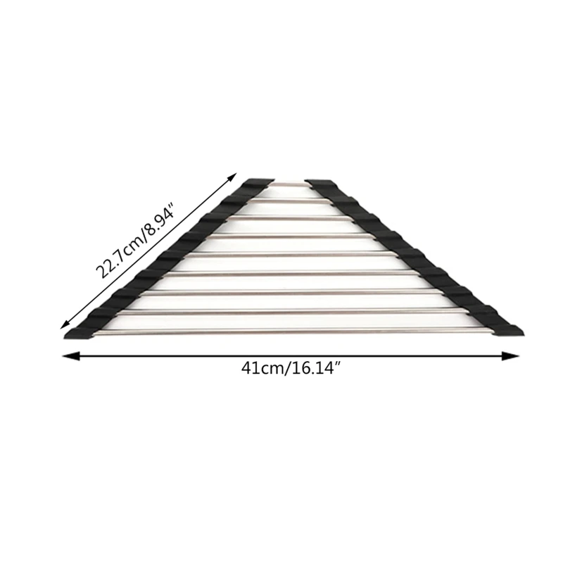 Свернутый треугольное блюдо сушилка для раковины угол над раковиной Caddy губка держатель складная нержавеющая сталь сливная кухняOOTDTY100% новый и высокое качествоОсобенности:Идеальный размер: треугольная стойка для полного использования углового пространства кухонной раковины. Предназначен для максимальной укладки, способной эффективно сушить блюда при надлежащем дренаже и вентиляции.Многократное использование: можно использовать d в качестве небольшой разделочной доски для фруктов и овощей, чтобы высушить ваши блюда или просто для любой готовой работы, которая вам нужна. Безопасность при нагреве: идеально подходит для использования в качестве нескользящего тривета для горячих кастрюль или выпечки листов прямо из духовки. Положите его на любую кухонную столешницу, чтобы защитить от повреждений от горячих предметов.Складная конструкция: свернуть его быстро и легко, чтобы убрать и сделать вашу кухню менее зажатой. Действительно полезно для экономии пространства, легко чистить и регулировать, и вы можете сложить его до разных размеров.Высококачественные материалы: изготовлены из прочной нержавеющей стали 304, не содержит BPA безопасные для пищевых продуктов силиконовые края с интегрированным дизайном, которые устойчивы к ржавчине, не скользят и очень прочные.Прочный и прочный: прочная конструкция, которая не сгибается и не деформируется при использовании с кухонной утварью. Легко поддерживает тяжелые веса с использованием всех стержней. Высокое качество.Характеристики:Основной материал: нержавеющая стальРазмер: approx.41x22.7cm/16.14x8.94inДополнительные цвета: черный, серыйКоличество: 1 шт.Примечание:Возможны отклонения в 0-1 см вследствие измерений вручную. Пожалуйста, убедитесь, что вы не возражаете, прежде чем сделать ставку.Из-за разницы между различными мониторами изображение может не отражать фактический цвет изделия. Спасибо!Посылка:1 x треугольная сушилка (другие аксессуары на фото не включены.)