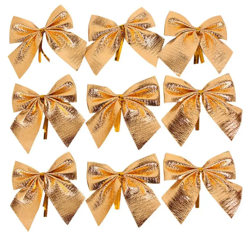 12 шт. рождественские украшения ручной работы, Мини атласная лента из полиэстера, бант, цветок, подвеска на рождественскую елку, Рождественское украшение сделай сам