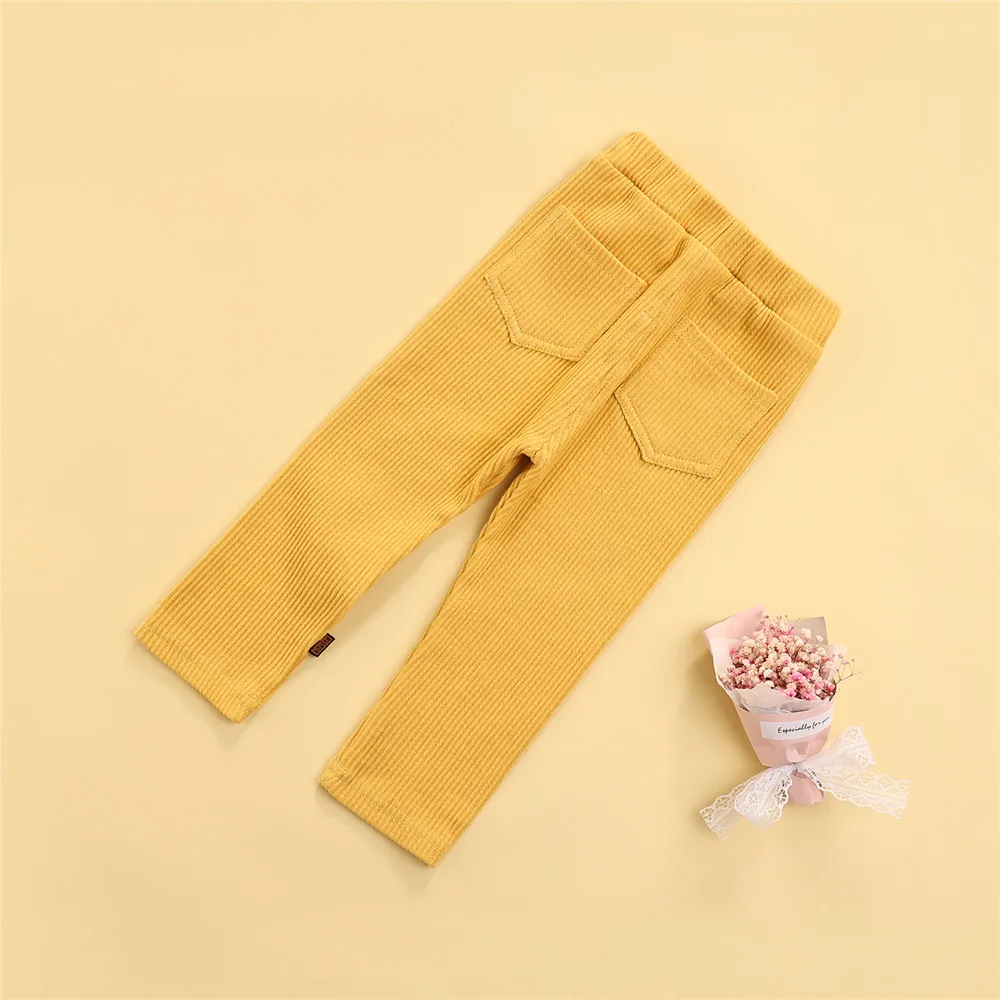 Модель 2021 года, Повседневные детские леггинсы для маленьких девочек и мальчиков, однотонные брюки с карманами на спине, длинные брюки, 6 цветов, s