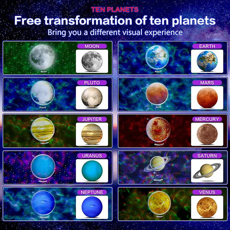 Светодиодный Галактический звездный свет с 10 планетами, Встроенный Bluetooth-динамик, океанская волна, освещение для детей и взрослых, 3 в 1, проектор ночного освещения