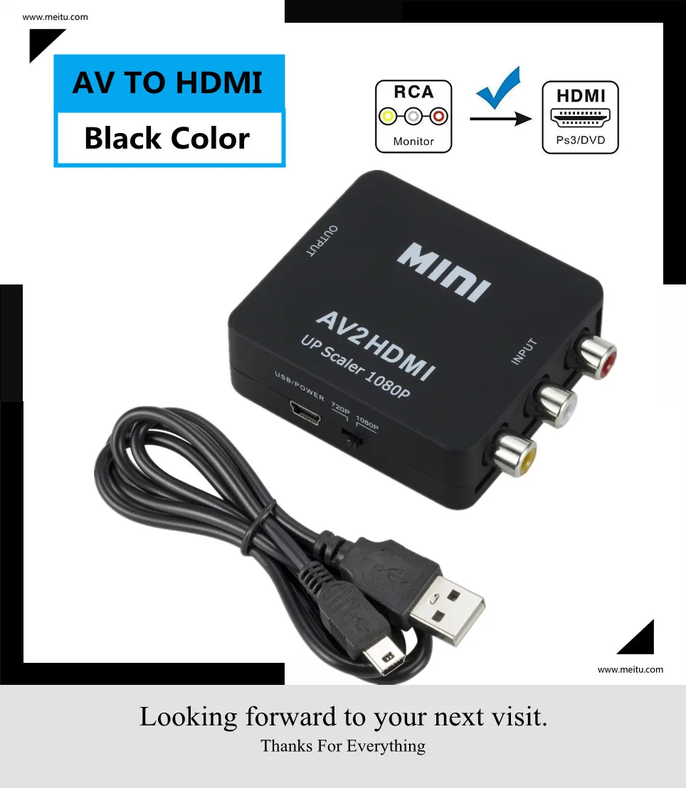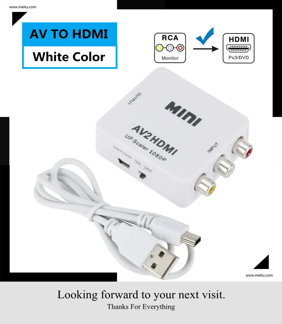 1080P RCA AV к HDMI-совместимый композитный адаптер конвертер AV2HD...
