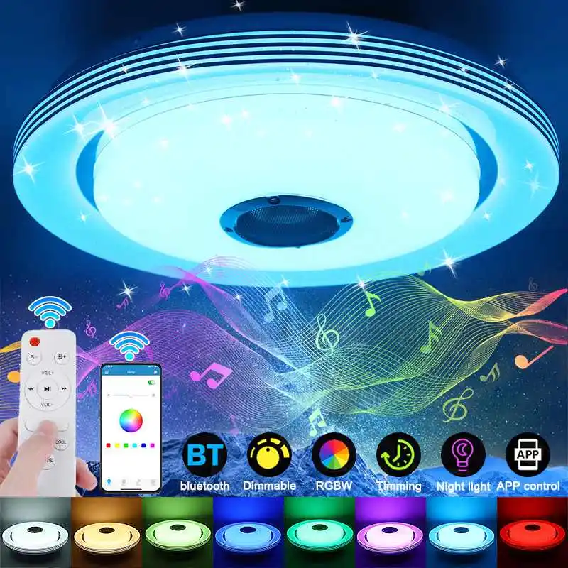 Характеристика:Он оснащен мощным динамиком, который воспроизводит музыку через bluetooth-соединение со смартфона. С помощью специально разработанного приложения светильник со смартфона может управлять цветом и яркостью лампы.Мощные светодиоды RGBW могут воспроизводить все спектральные цвета, а также производить белый светильник различной интенсивности и цветовой температуры.По сравнению с обычными светильниками Светодиодный прожектор потребляет минимальное количество электроэнергии и даже ниже энергопотребления, чем энергосберегающие лампы.【Энергосбережение 】-наш потолочный светильник для замены 100 Вт флуоресцентного трубного светильника экономит 65% вашего электрического счета. Для снижения уровня повторной стоп-сигнала с частотой Номинальный срок службы 50000 часов【Защита глаз Desigh】-нет стробоскопа, нет шума. Без бликов, не только защищает ваши глаза от суровых и бликовых огней, но и создает теплую и комфортную семейную среду для вас【Многофункциональное приложение-особенно настройка времени, установите время выключения, музыка будет сопровождать вас, чтобы заснуть, или Установите будильник, чтобы начать прекрасный день с музыкой.