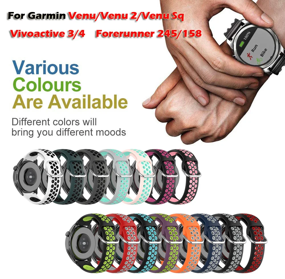 Силиконовый ремешок для Garmin Vivoactive 4/3 ремешок для Garmin Venu 2 Venu SQ Forerunner 245 158 ремешок для часов с пыленепроницаемой вилкой