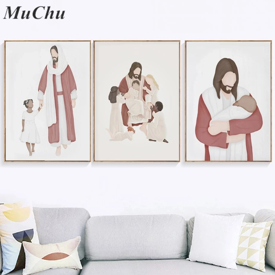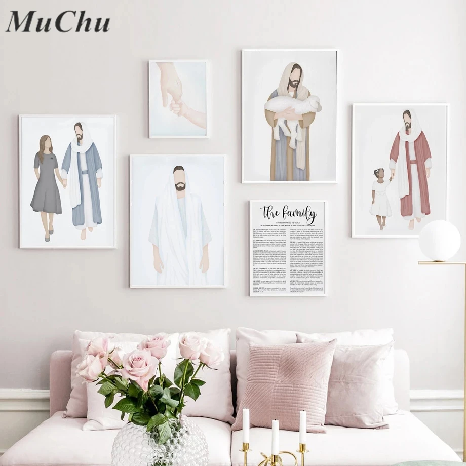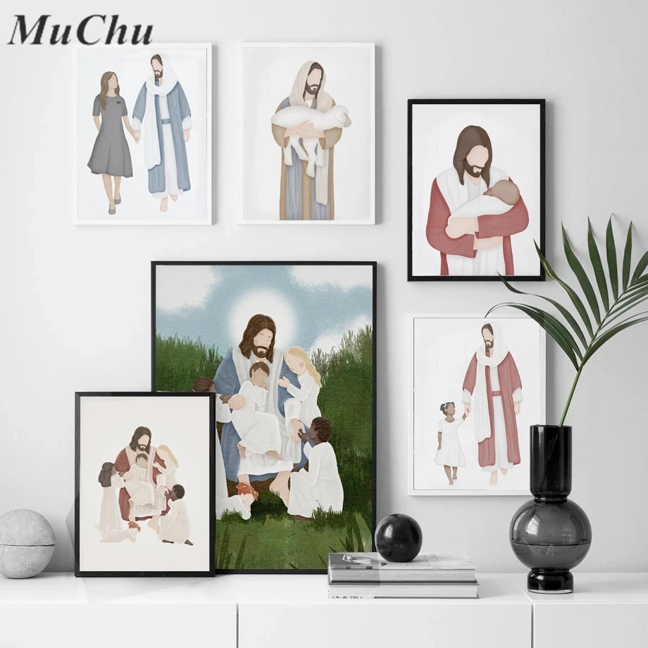 Скандинавские настенные постеры с изображением святого отца Иисуса любви семьи детей, Картина на холсте, настенные картины для гостиной, домашний декор
