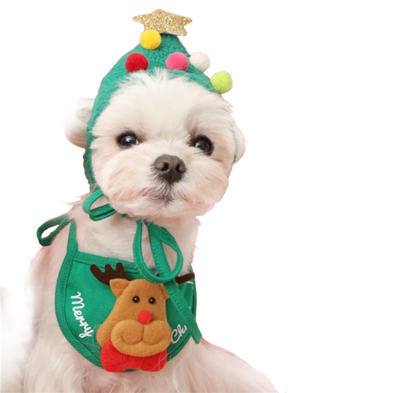 Рождественская шапка для собак и кошек, слюнявчик, Тедди для борьбы...