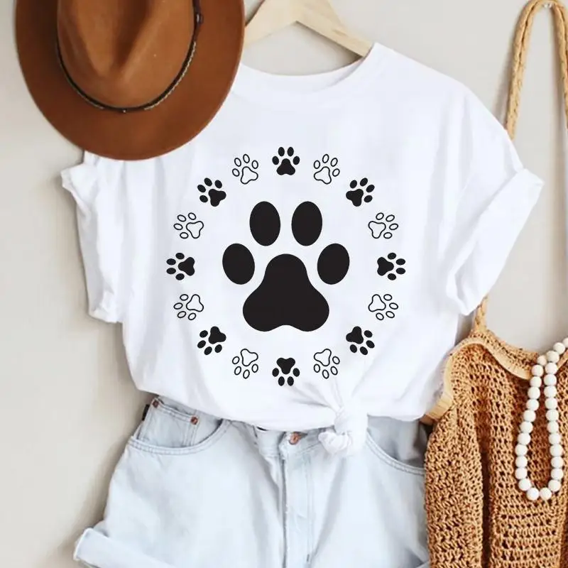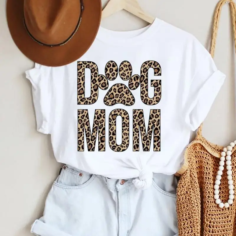 Женская футболка с принтом Собачья лапа и надписью леопард
