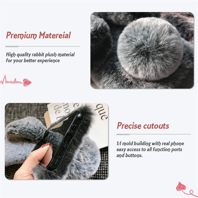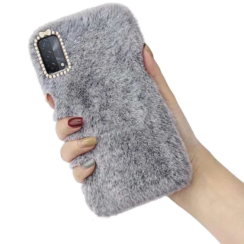 Меховой чехол для телефона OPPO A93 A15 A54 A74 A5S A9 A12 2020 A55 Reno 5 6 Pro 6Z 2 3 4 5G 2Z ZF зимний Симпатичный плюшевый чехол с кроликом
