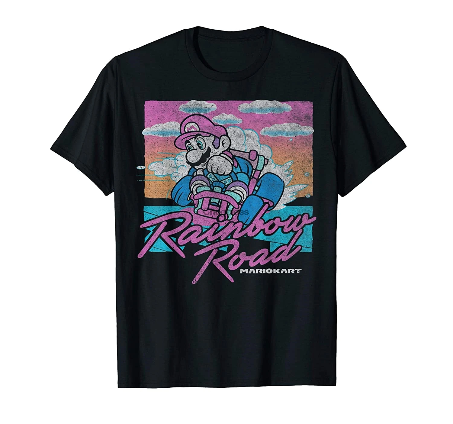 Футболка с изображением Марио карт радуги дороги пастельного плаката