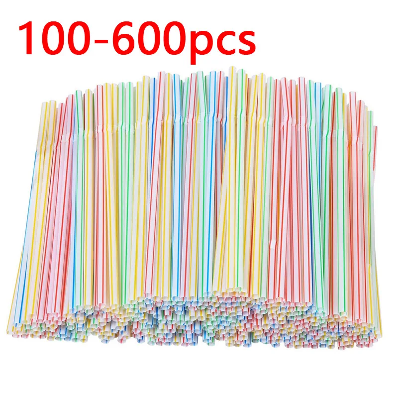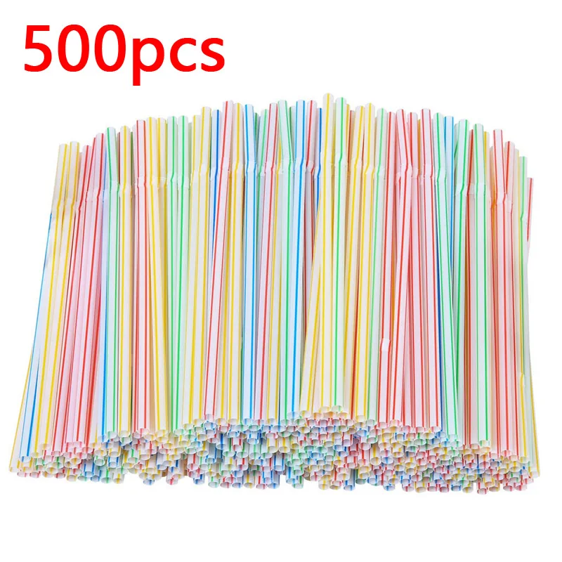 500 шт., Разноцветные Одноразовые соломинки в полоску