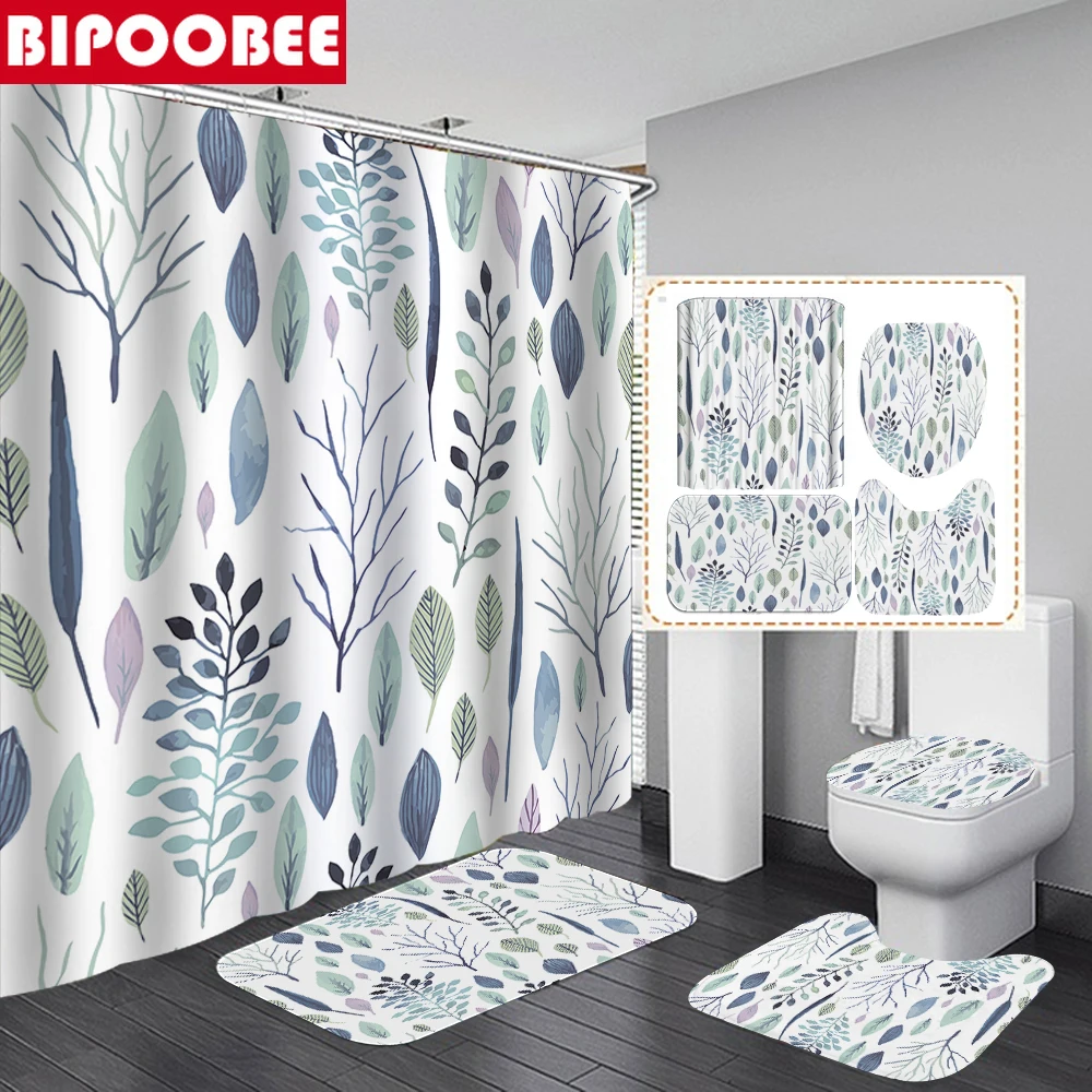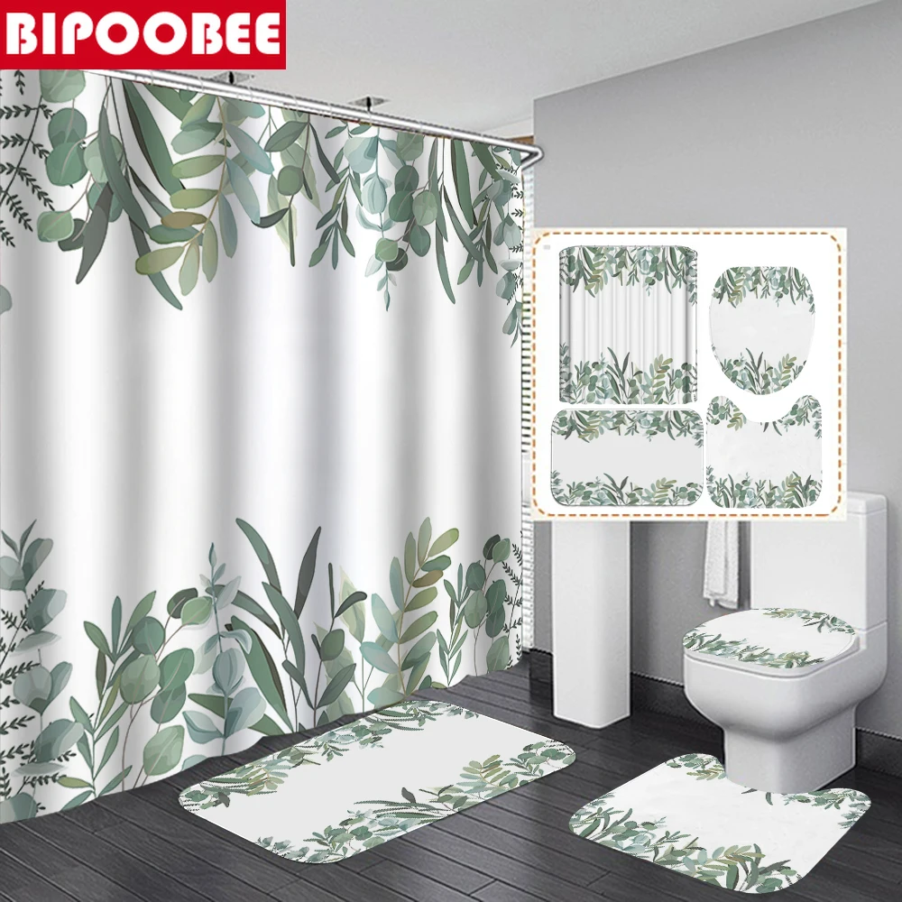 Занавеска для душа с принтом зеленых тропических растений и листьев пальмы