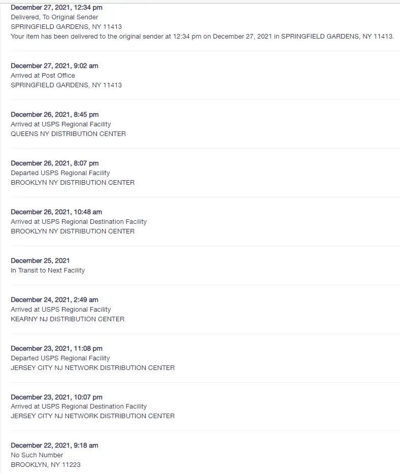 Покупатель никогда не получил товар, так как адрес доставки был указан продавцом неправильно. Товар был возвращен продавцу 27 декабря и почему-то AliExpress думал, что товар был доставлен. Заказ был размещен 14 декабря, но покупатель не получил ничего с 31 декабря, но уже был взят плату за 12,99 долларов США. Прилагается скриншот с отслеживания AliExpress, указывающий, что товар был доставлен обратно продавцу. Также было указано, как был указан адрес доставки, который отличается от адреса покупателя, указанного в профиле AliExpress. Очень разочаровывает сервис Aliexpress. Это не первый раз, когда AliExpress отправил плохой адрес доставки.