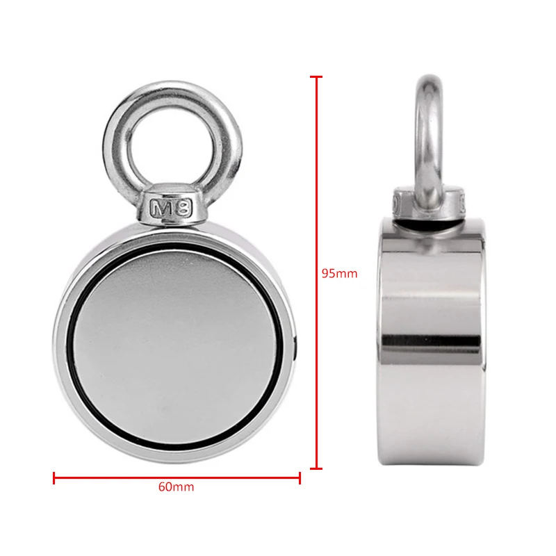 Мощный Неодимовый магнит, двухсторонний спасательный магнит, держатель для морской рыбалки, вытяжной монтажный прибор с кольцом, 300 кг, диаметр 60 мм