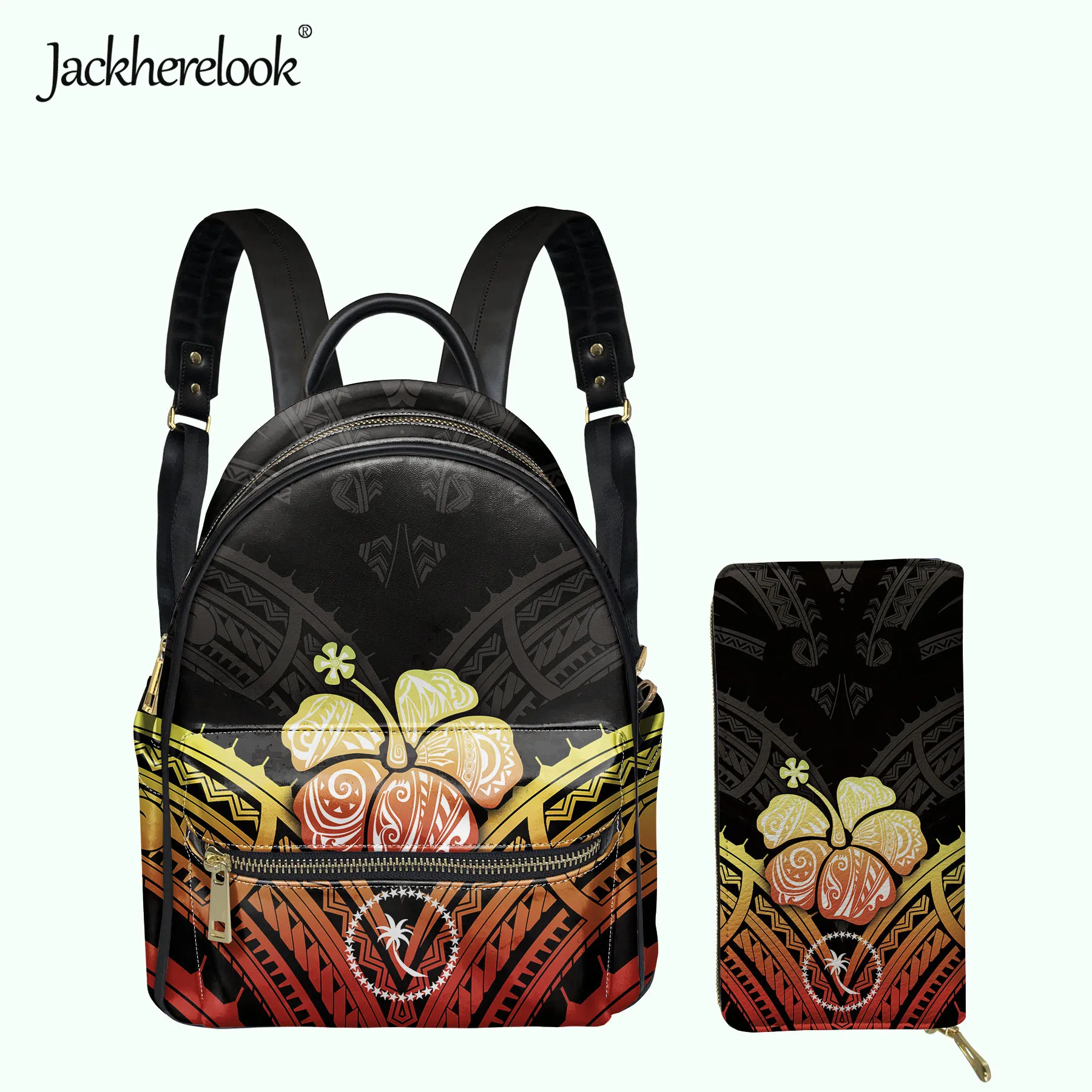 Jackherelook Chuuk Hibiscus полинезийский Узор Женский Рюкзак Кошелек Набор Мини школьная сумка из ПУ кожи ранец для девочек Mochila