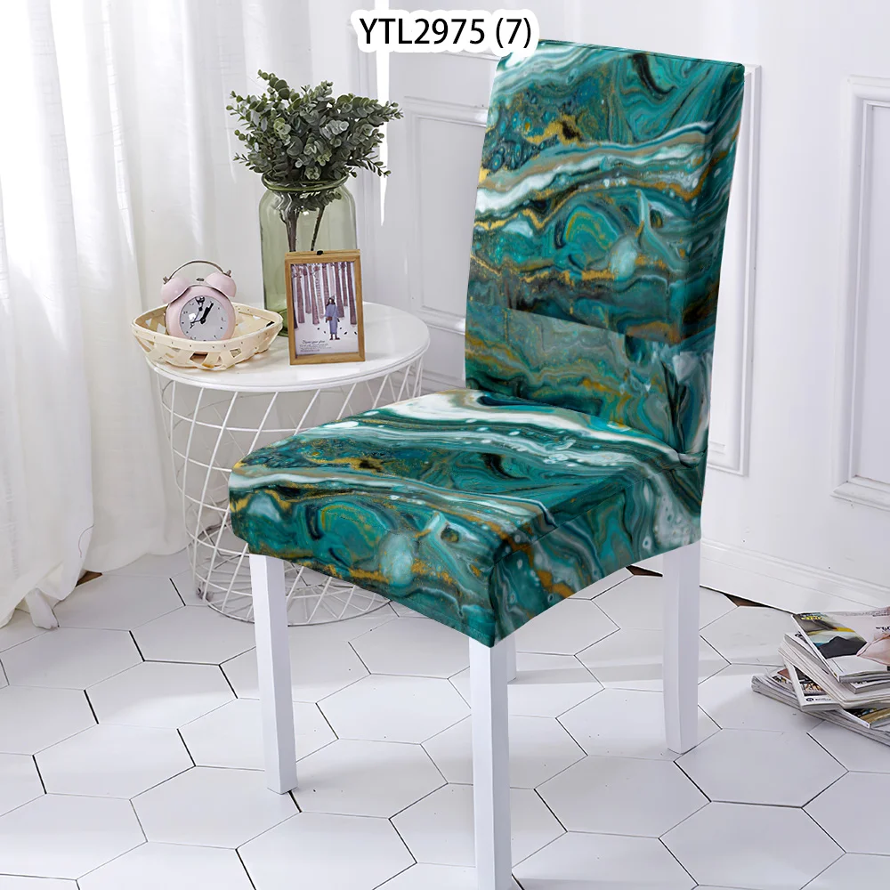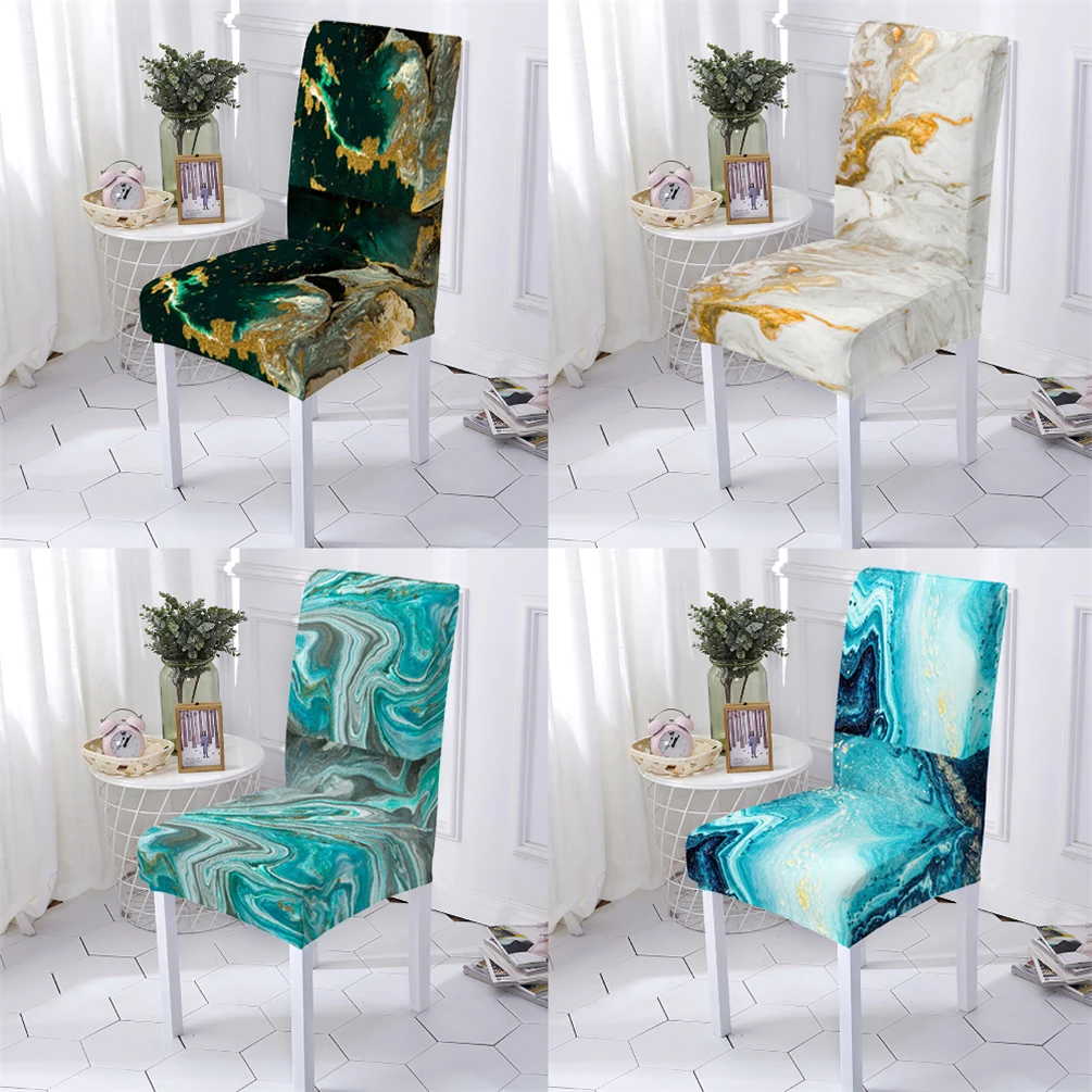 Чехол для стула в мраморном стиле, эластичная Обложка для кухонных стульев с мраморным узором, чехлы на стулья