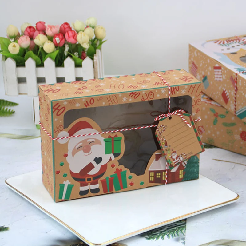 12 шт. рождественские коробки для печенья, Рождественская Подарочная коробка из крафт-бумаги, рождественские украшения для дома, новогодние подарочные коробки, Рождество 2022