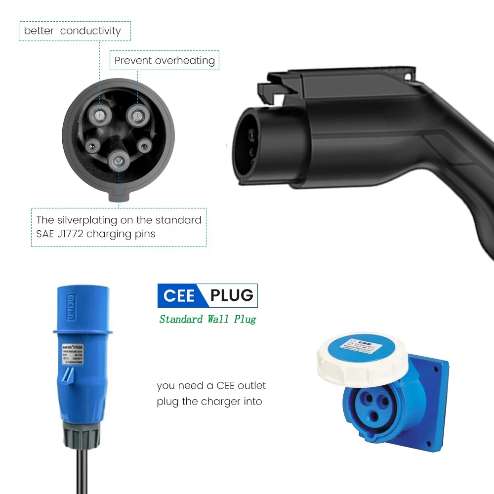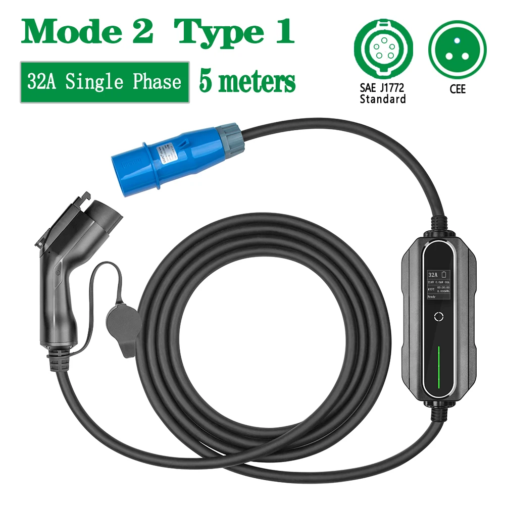 Зарядное устройство для электромобилей типа 1 Saej 1772 адаптер 16 А 24 а 32 А регулируемое электрическое автомобильное зарядное устройство с вилкой CEE 220 В-240 В