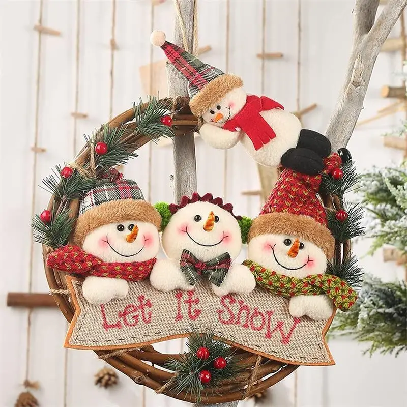 2021 Рождественский венок из ротанга, искусственное кольцо с лозой, подвеска, рождественские украшения, декор для гирлянда со снеговиком, Прямая поставка