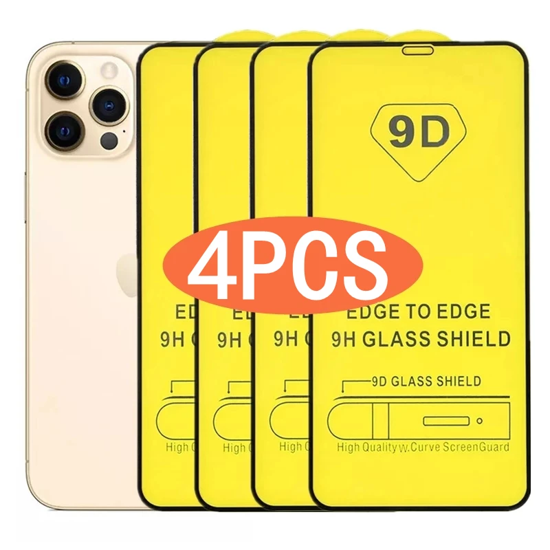 Закаленное стекло с полным покрытием для IPhone 13, 11, 12 Pro Max Mini, 6S, 7, 8 Plus, Защита экрана для IPhone XS, X, XR, SE, стекло 9D, 1-4 шт.