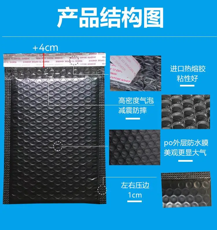 50 шт. черные полиэтиленовые Пузырьковые почтовые пакеты, мягкие конверты для подарочной упаковки, полиэтиленовые пакеты для самостоятельного запечатывания, различные размеры