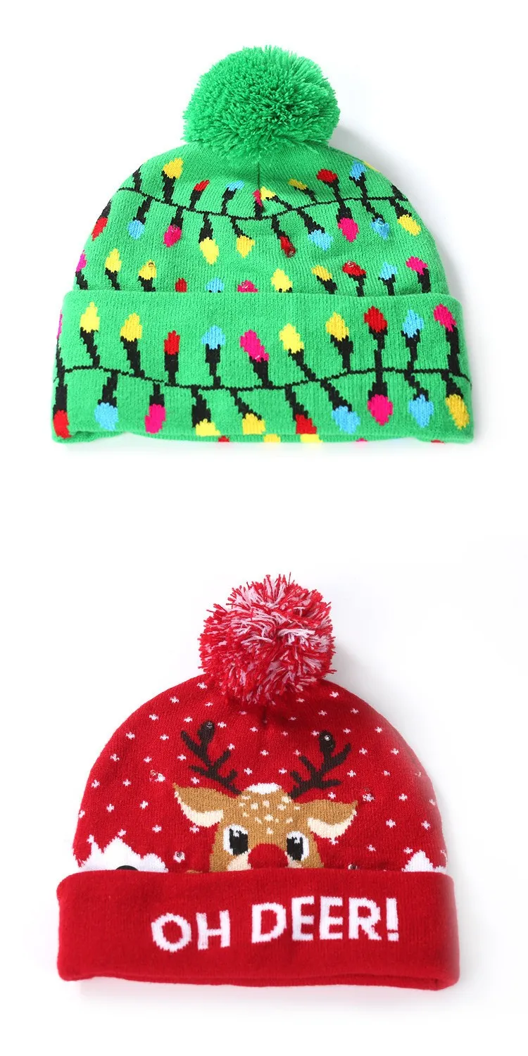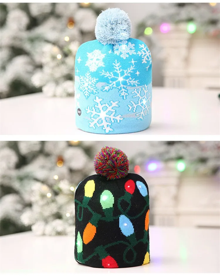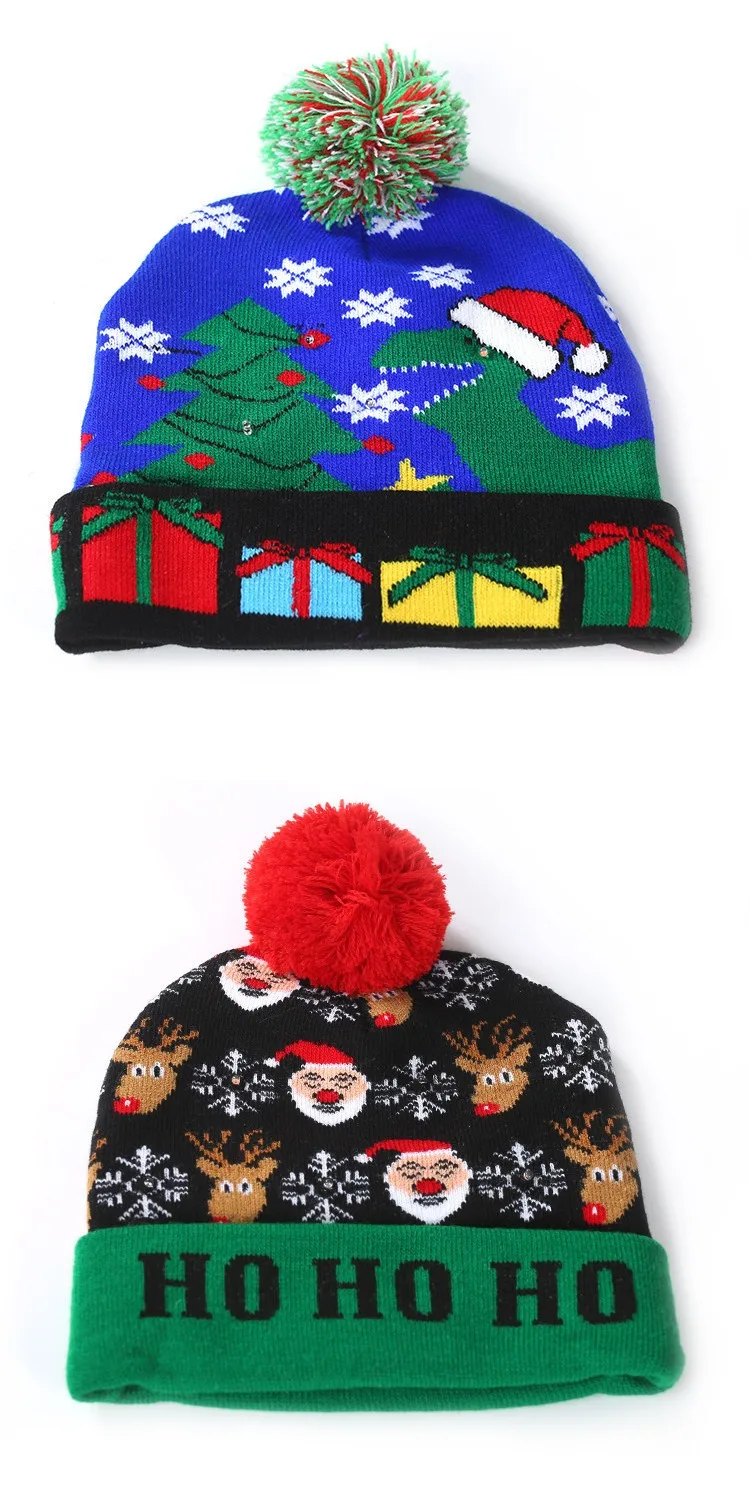 Светодиодная Рождественская шапка, свитер, вязаная шапочка, Рождественская вязаная шапка с подсветкой, рождественский подарок для детей, новогодние украшения 2021 года
