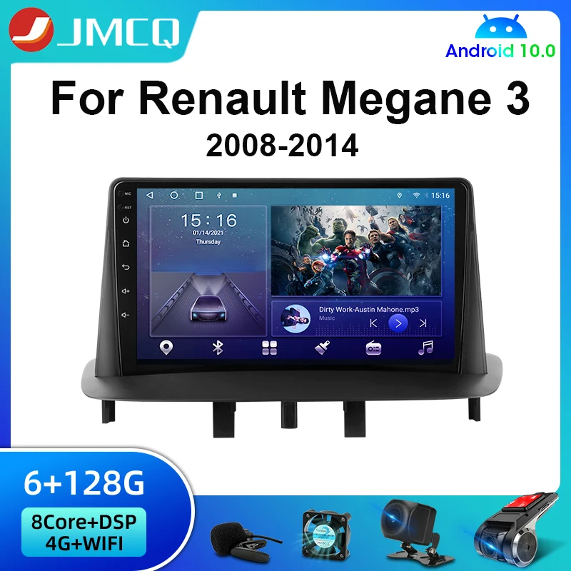 Автомагнитола JMCQ, 2 Din, Android 10, мультимедийный видеоплеер для Renault Megane 3 Fluence 2008-2014, 2010, 2011, 2012, навигация, стерео