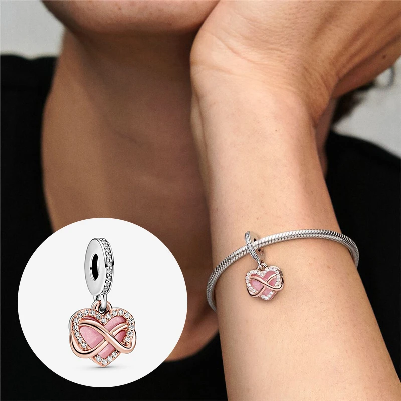 Новинка розовое золото сердце с бесконечностью Висячие Бусины Подхо...