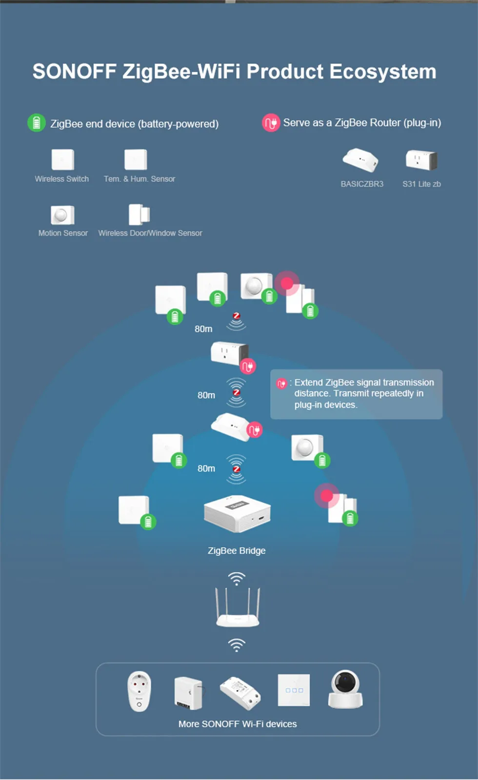 Интеллектуальный выключатель света SONOFF Zigbee мостSNZB-01SNZB-02...