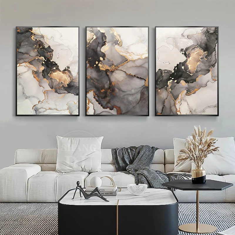 Современный абстрактный Черный Золотой роскошный постер мраморная Картина на холсте принты чернила скандинавский настенный художественный Декор для гостиной