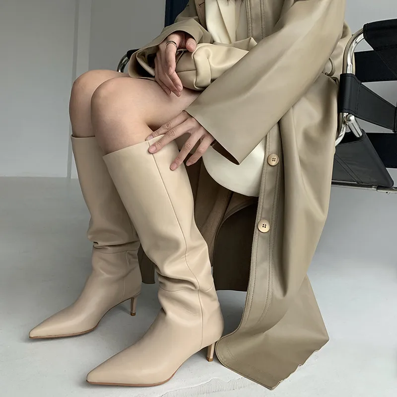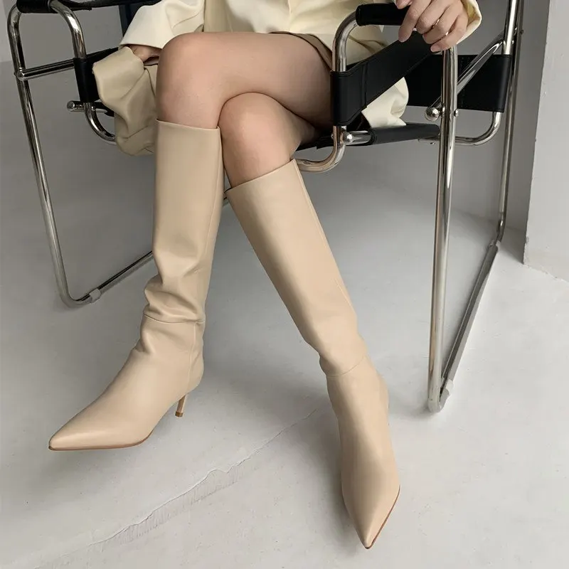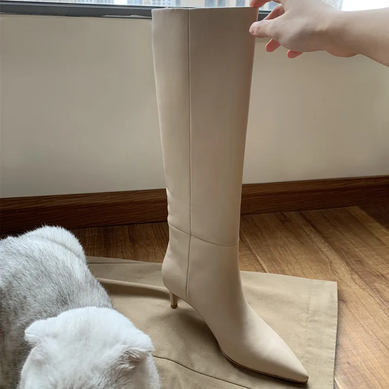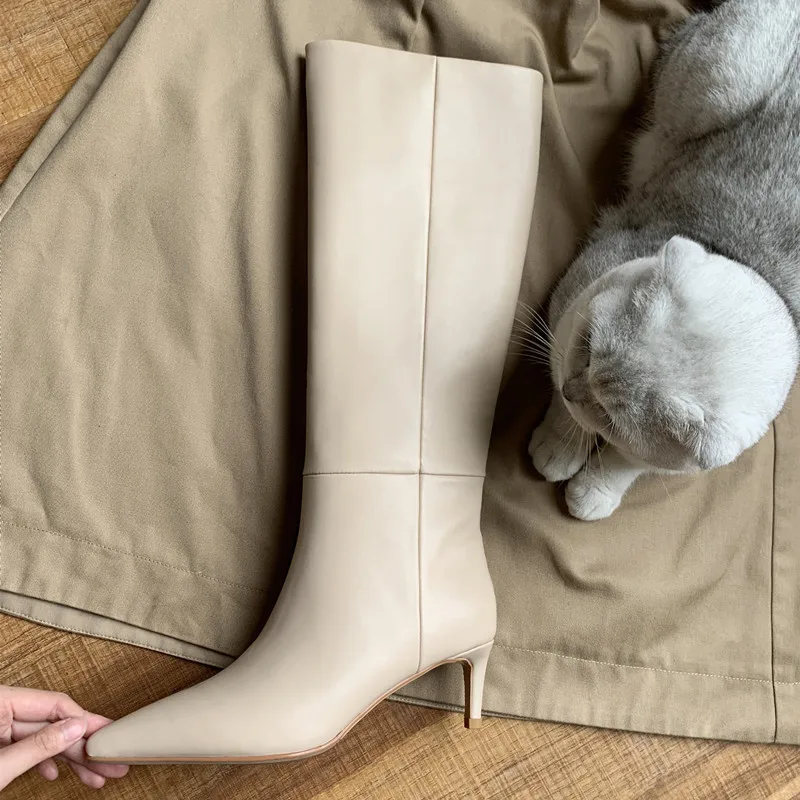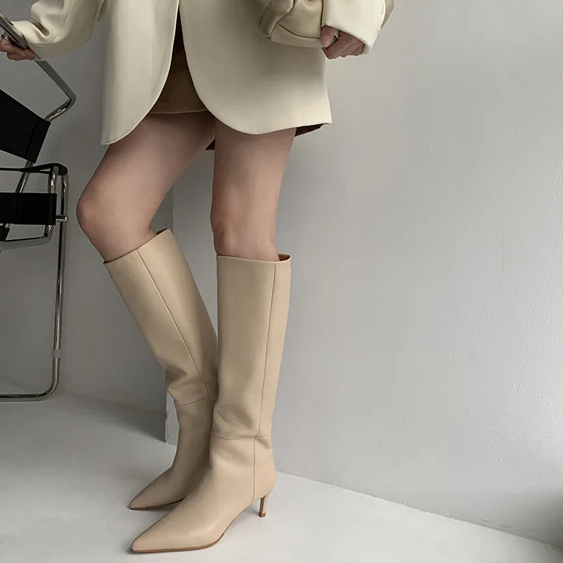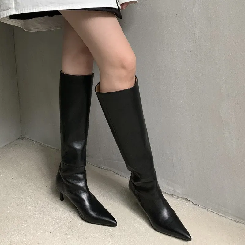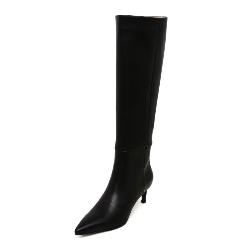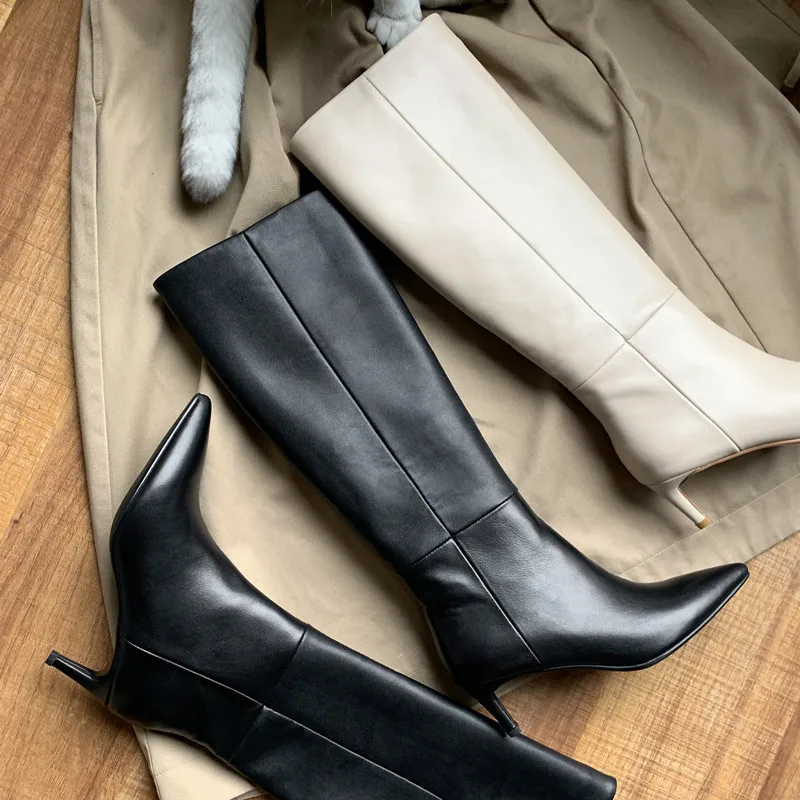 Женские сапоги из натуральной кожи MORAZORA, черные сапоги до колена, с острым носком, на высоком каблуке, зимний сезон 2019