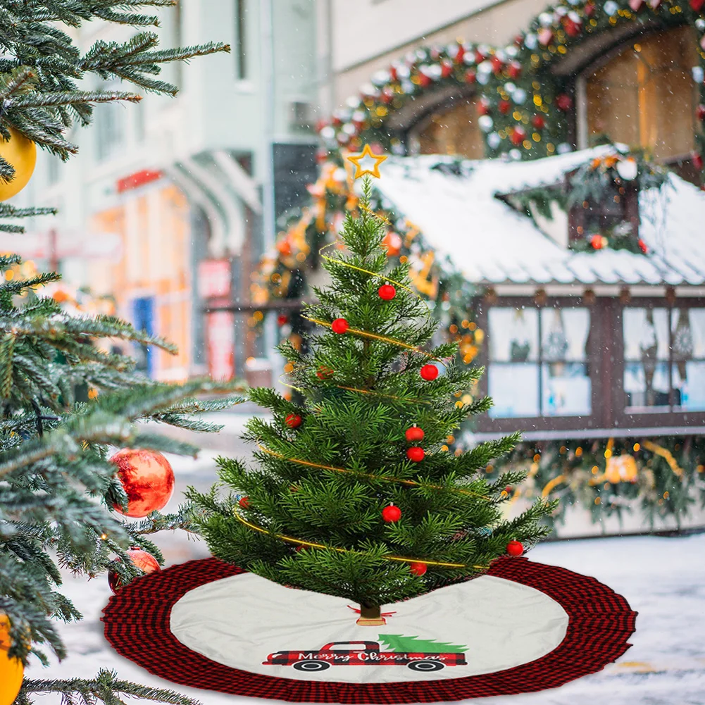 Украшение для дома на Рождество, юбка на елку, украшение на елку, красная, черная, клетчатая, кружевной узор, коврик для рождественской елки, украшение