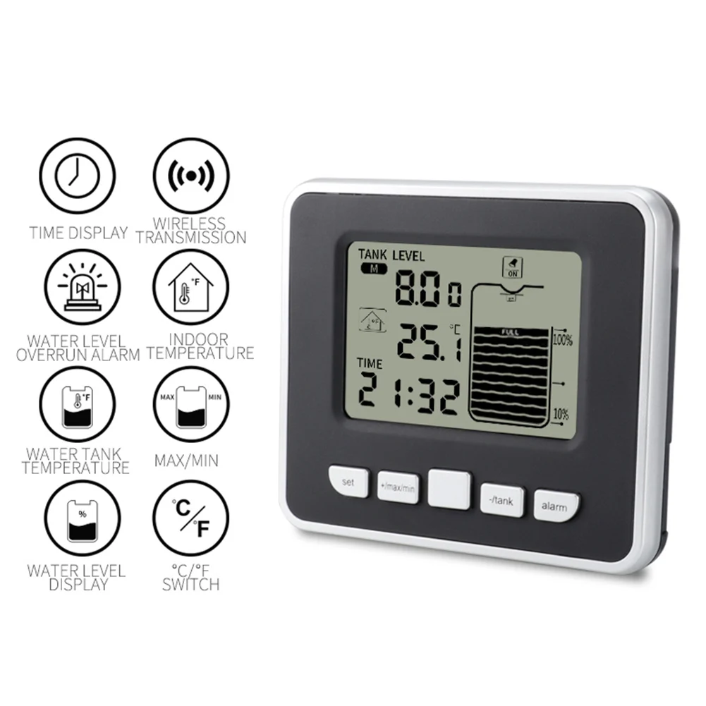 Датчик уровня воды, ультразвуковой измеритель уровня жидкости в резервуаре с сигнализацией температуры и временем сигнализации