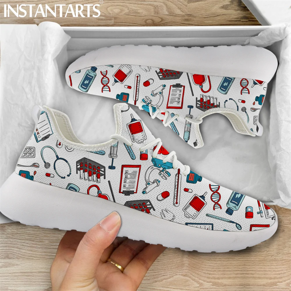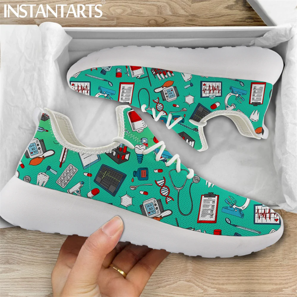 Женские сетчатые кроссовки INSTANTARTS, розовые вязаные кроссовки на плоской подошве с мультяшным рисунком для больниц