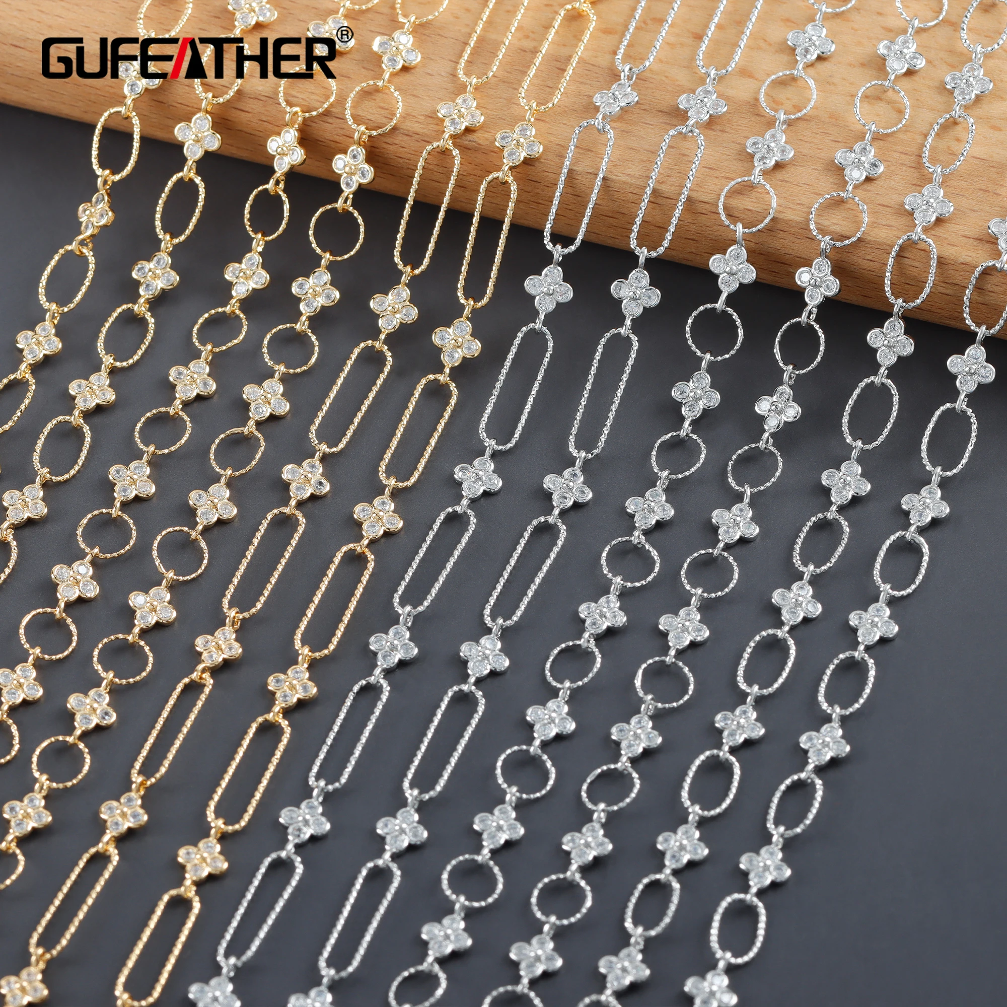Цепочка GUFEATHER C235 для самостоятельного изготовления ювелирных изделий, колье из меди, циркона, не содержит никель, для изготовления браслетов и ожерелий, 18k, 50 смлот
