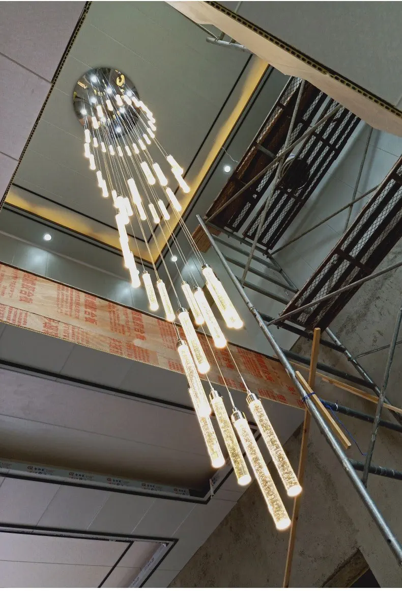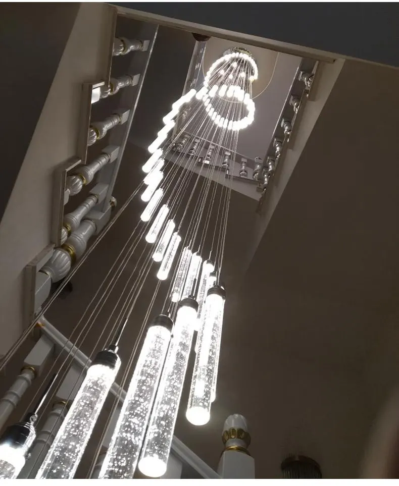 Современная светодиодная люстра с гальваническим покрытием, золотистая хром, спиральная лестничная люстра, большая промышленная длинная лампа для отеля