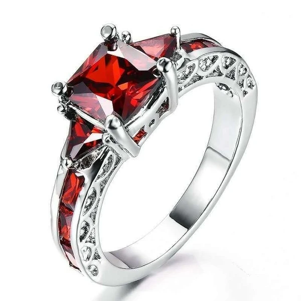Винтажное модное и элегантное женское кольцо с синим кристаллом, модное обручальное кольцо, ювелирные изделия для женщин, кольцо с красным кристаллом