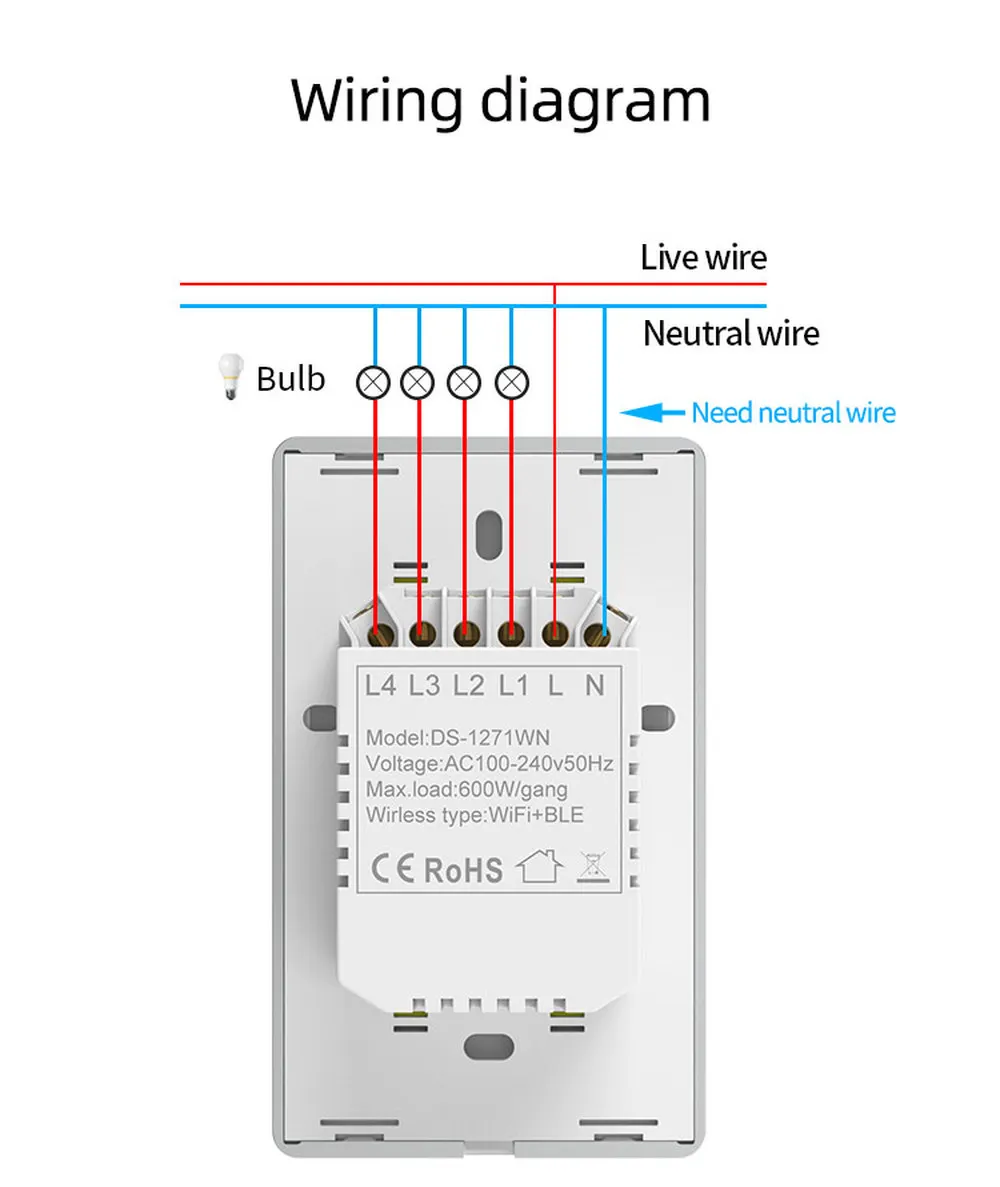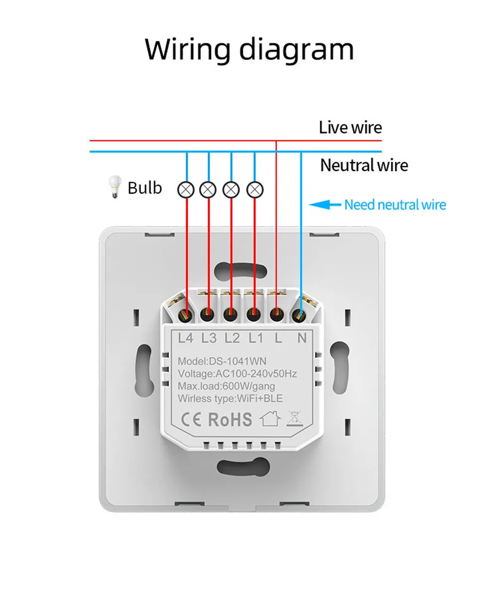Характеристики1/2/3/4 Gang WiFi Touch Switch
