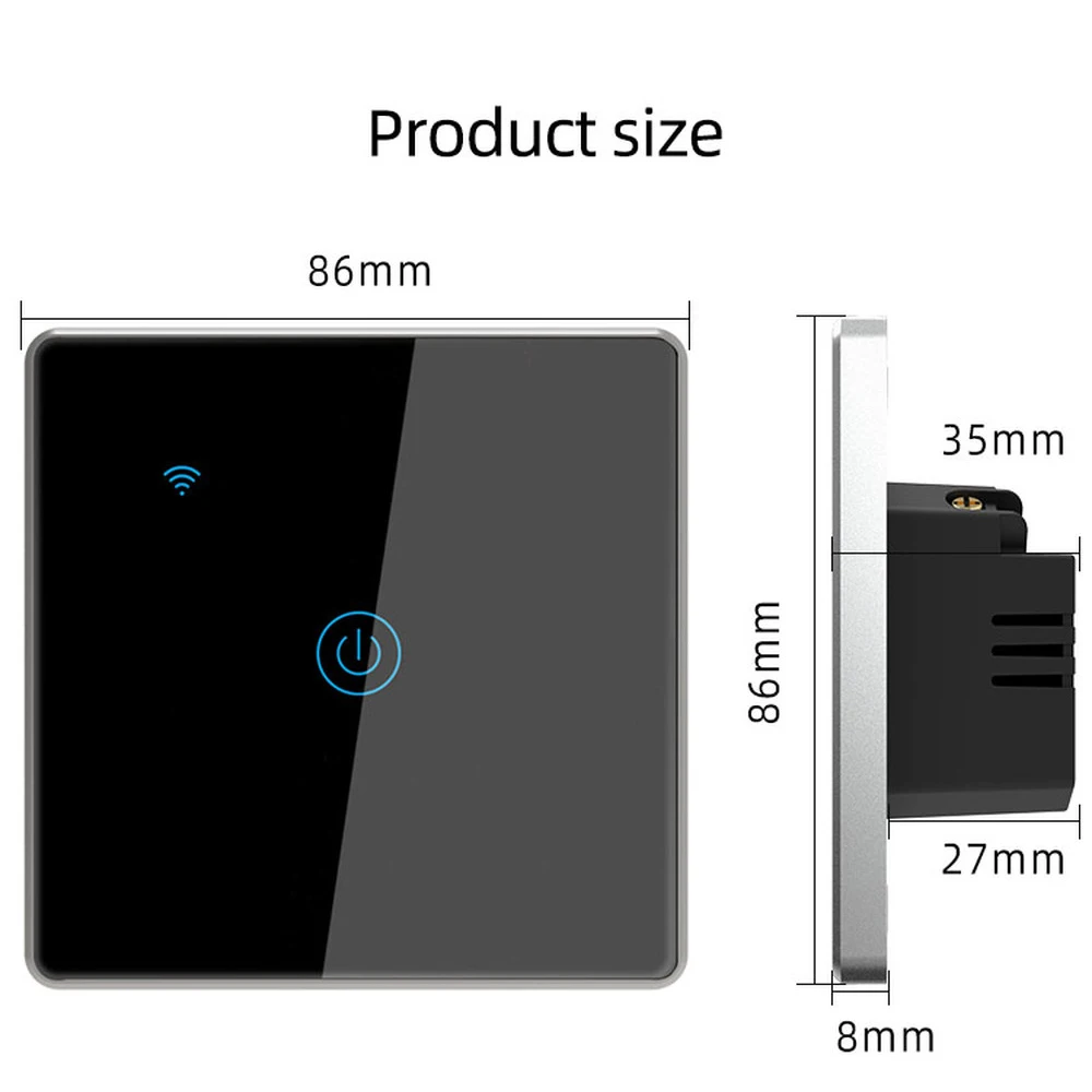 Примечание:1. ЕС квадратный (86 мм * 86 мм)2. Американский прямоугольный (118 мм * 72 мм)Новая версияUpdate1: новый режим сопряжения с WiFi + Bluetooth1. С wifi + bluetooth, подключенным для автоматической идентификации и простой конфигурации2. Больше не нужно делать так много сложных шагов для сопряжения3. Быстрое и легкое подключение в течение 8 секундUpdate2: Подсветка ВКЛ/ВЫКЛ опционально1. Переключатель подсветки с возможностью включения/выключения без влияния на сон2. Новый статус реле NO/OFF в приложении более персонализированные настройки как вкл/выкл/запомните последний Статус при выключении питанияПараметрыБренд: BONDAНомер товара: 656B/666A/666BЦвет: белый/черный/золотойМатериал: ПК + панель из закаленного стеклаНапряжение: 100-250V 50/60HzТок: нужна нейтральная линия 10AНоминальная нагрузка: нужна нейтральная линия 0-1000 ВтМощность Потребляемая мощность: ≤ 0,5 WРабочая температура: 0 ℃ ~ 40 ℃Стандарт WI-FI: IEEE 802.11bgn 2,4 ГГцСистема поддержки: выше iOS 8,0 или Android 4,3Безопасность сети: WPA/WPA2Режим управления: приложение/руководствоСертификация: CE, RoHSПриложение: Tuya Smart/Smart LifeПосылка1 * умный Wifi переключатель1 * конденсатор2 * винты