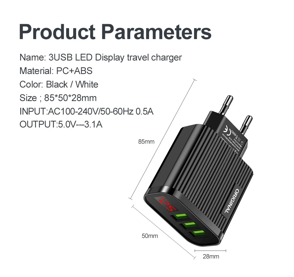 【Название продукта 】:3 usb светодиодный дисплей Мобильный телефон зарядное устройство;