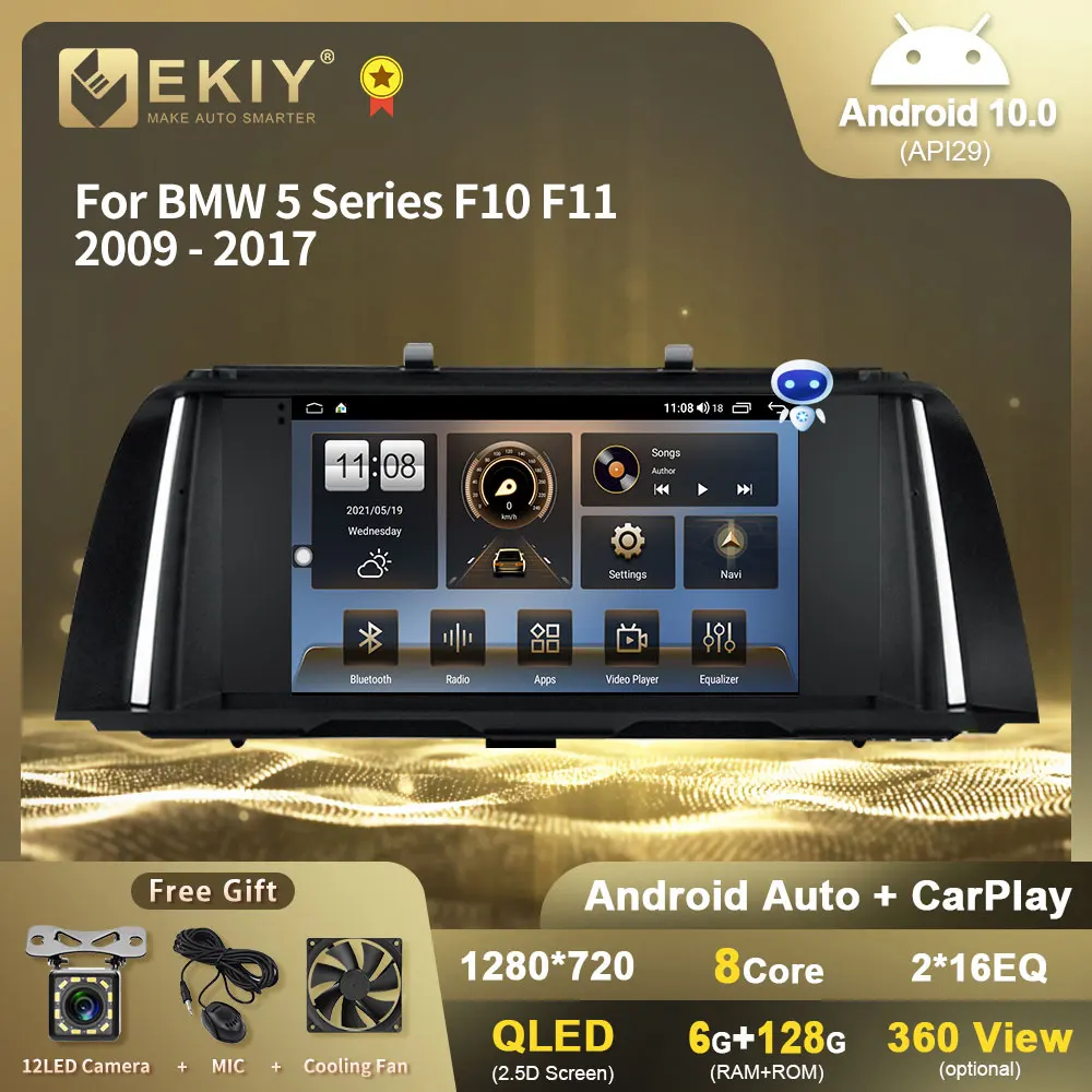 EKIY 6 + 128G QLED DSP Android 10 автомобильное радио для BMW 5 серии F10 F11 2009-2017 Стерео GPS навигация мультимедийный плеер BT CarPlay