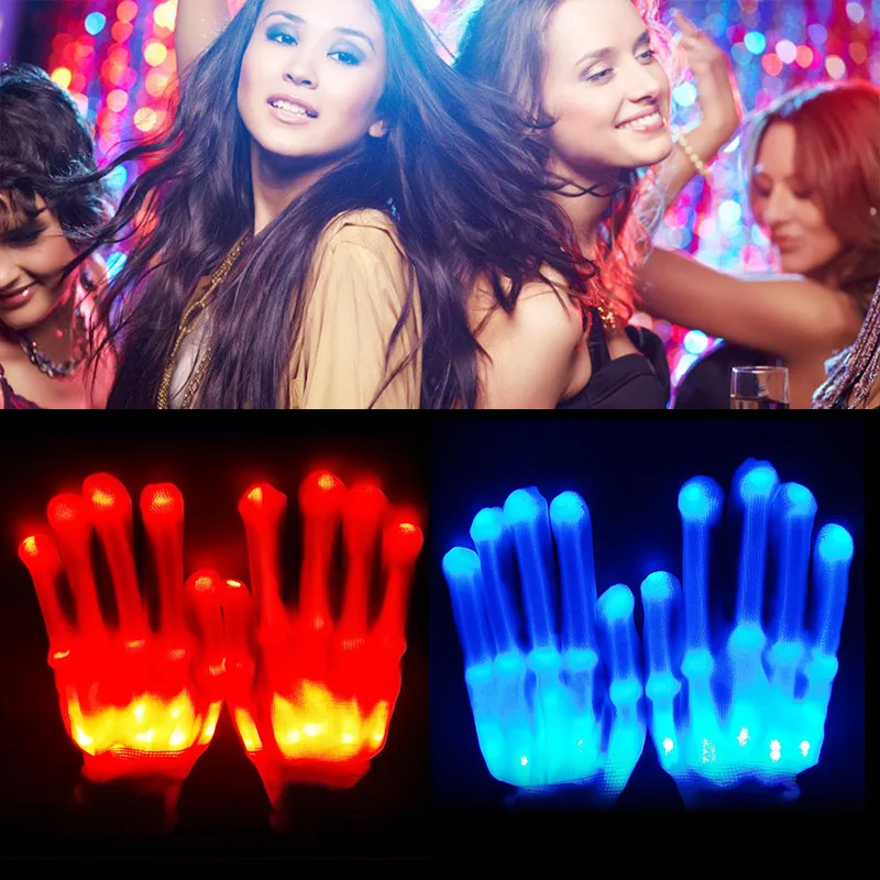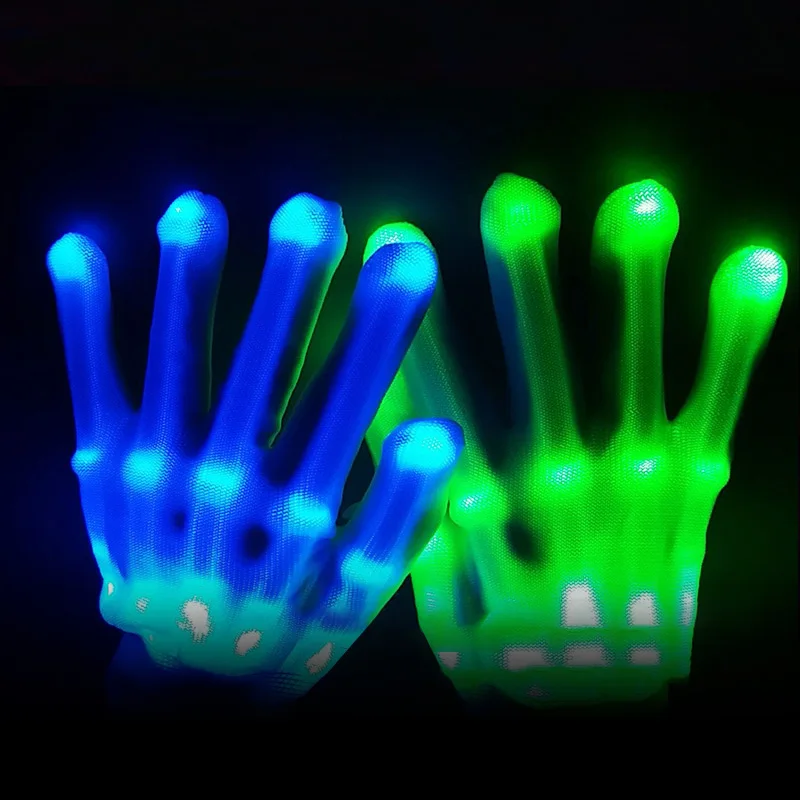 СВЕТОДИОДНЫЕ светящиеся перчатки, неоновые светящиеся перчатки с черепом, сценический костюм, товары для рождества, реквизит для хэллоуивечерние