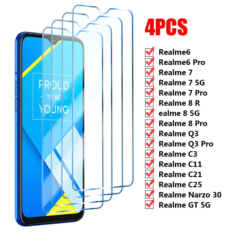 4 шт. прозрачное закаленное стекло на Realme 8 Pro 8 7 Pro 7 6 6 Pro X7 X7 Pro закаленное стекло для Realme GT Neo C21 C25 C3 Q3 Pro Q3