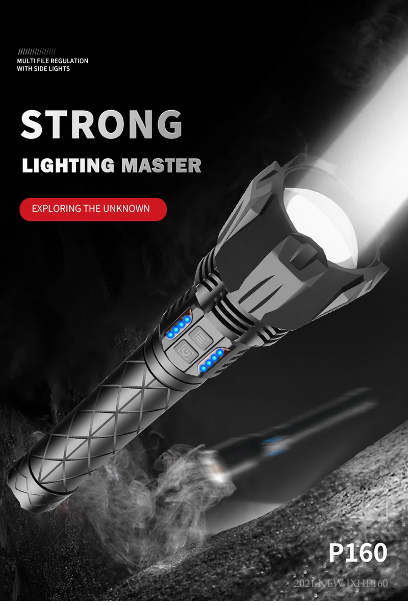 XHP160 МОЩНЫЙ СВЕТИЛЬНИК, мощный светодиодный светильник Fash, водонепроницаемый, USB Перезаряжаемый, 26650, 18650, алюминиевый фонарь с зумом, 8000000LM, Lampe