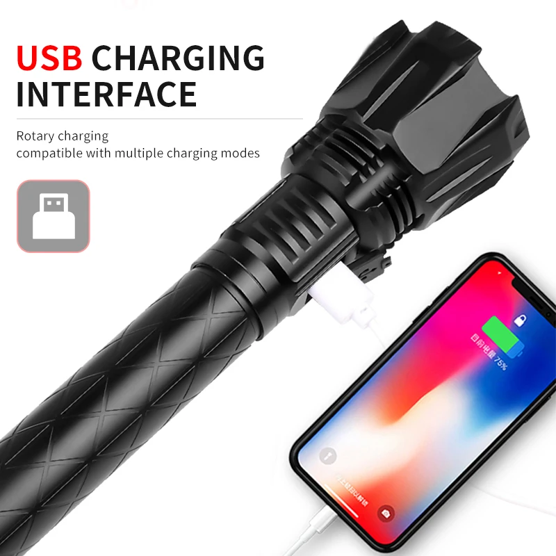 Бренд: TRLIFEМодель: тактический светодиодный фонарьИсточник света: XHP50Внешний вид цвет: черныйРазмер: 16,6 см × 4 см × 3,3 смИсточник питания для XHP50 : 1 аккумулятор 26650 или 1 аккумулятор 18650Время освещения: 2-8 часовМетод зарядки: Прямая зарядка через USBДиапазон: от 200 до 500 метровКласс водонепроницаемости: IPX-6Вес для XH50: 193 г (без аккумулятора)Материал корпуса: алюминиевый сплавМасштабирование: регулируемый фокусМатериал: T6063-T6 авиационный алюминий