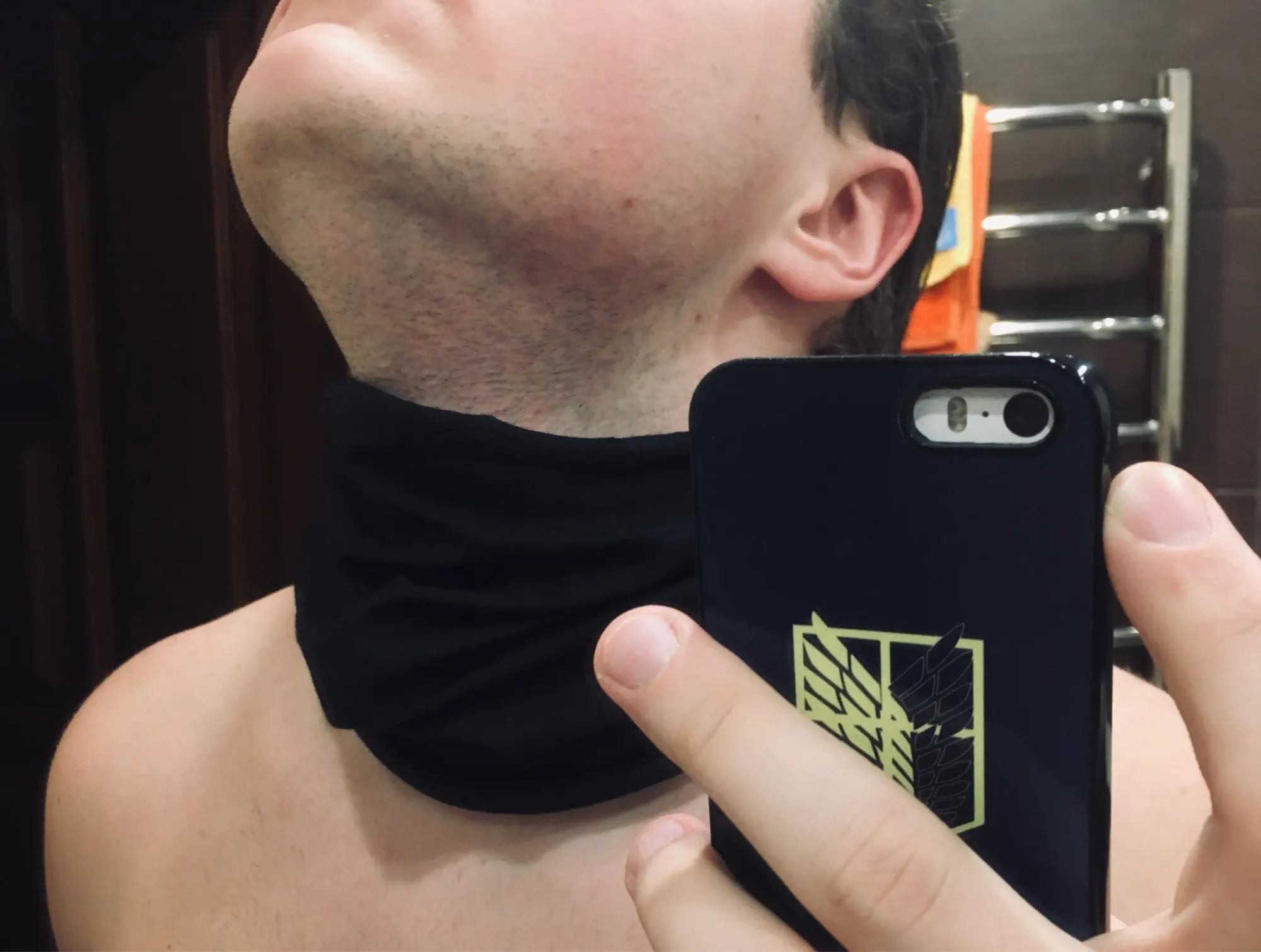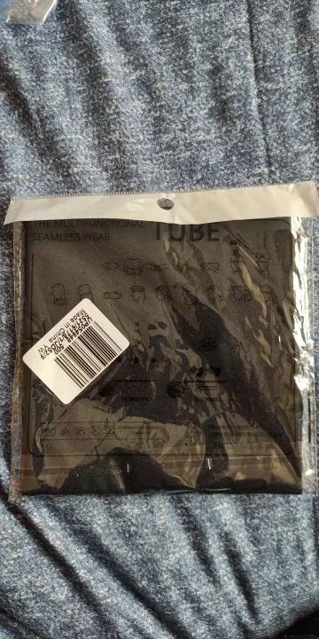 Получил через месяц, хорошая и приятная к телу. Края оверложены, черного цвета внутри и снаружи. Довольно длинная, можно разрезать на две штуки)) Дышать через нее легко и при намокании не забирает тепло. Доволен!