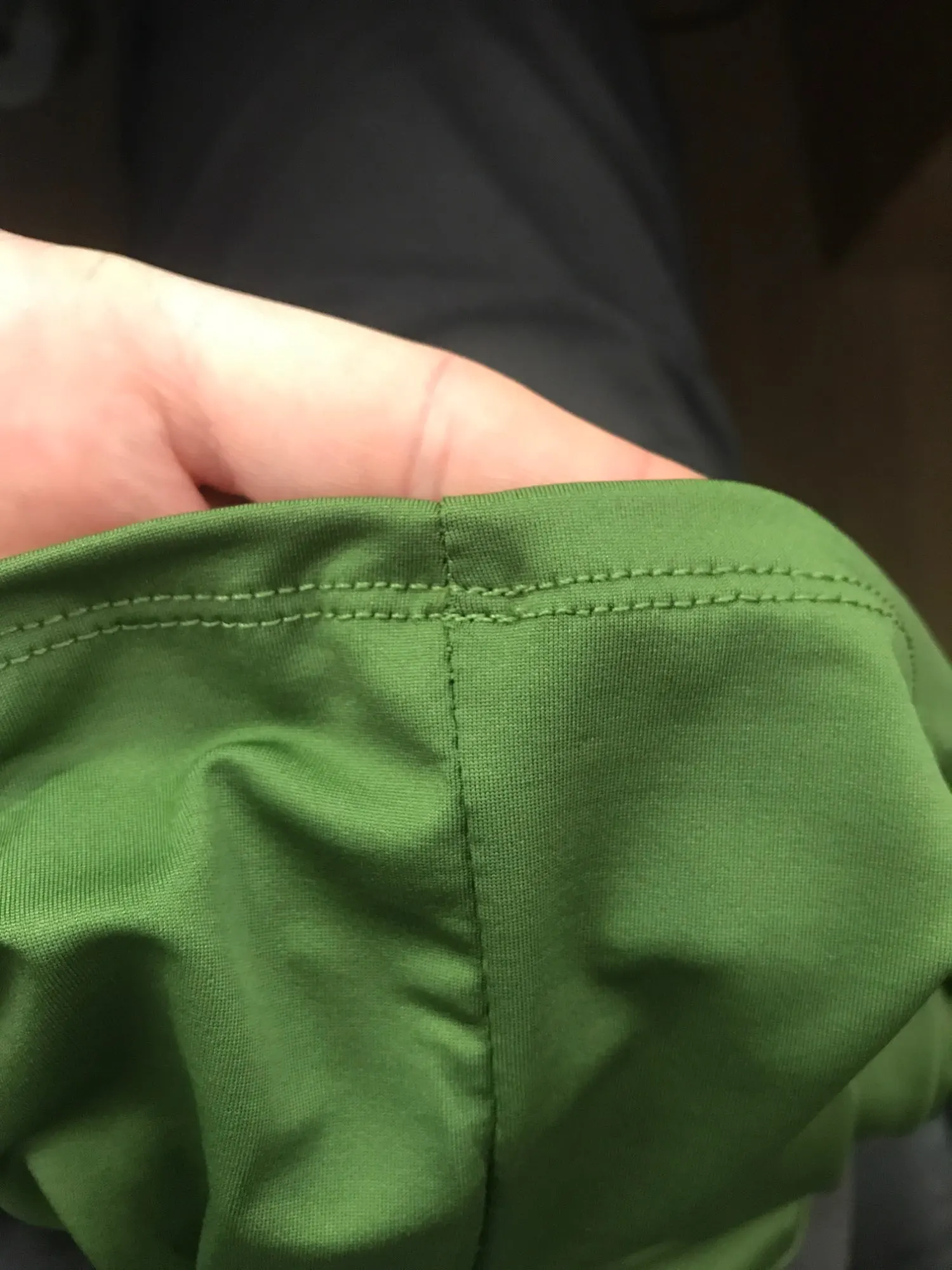 как будто кусок стрейчевой штанины отрубили как попало , и даже не простроченно ни с одной из сторон не оверлочено короче что попало , . чуть попробуешь надеть , пустит стрелки . Продовца не советую!!!
