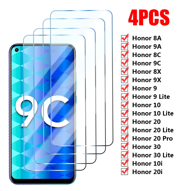 4 шт. защитное стекло на Honor 10 9 8 10 Lite 20 Lite 20 Pro 30 30 Lite 9X Lite закаленное стекло для Honor 9X 8X 9C 8C 10i 20i 30i